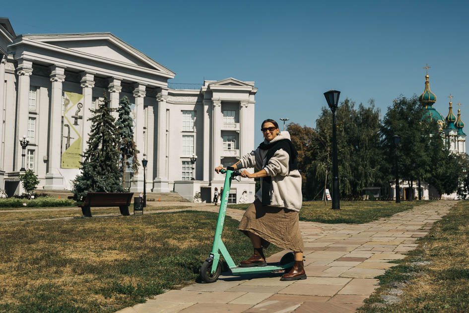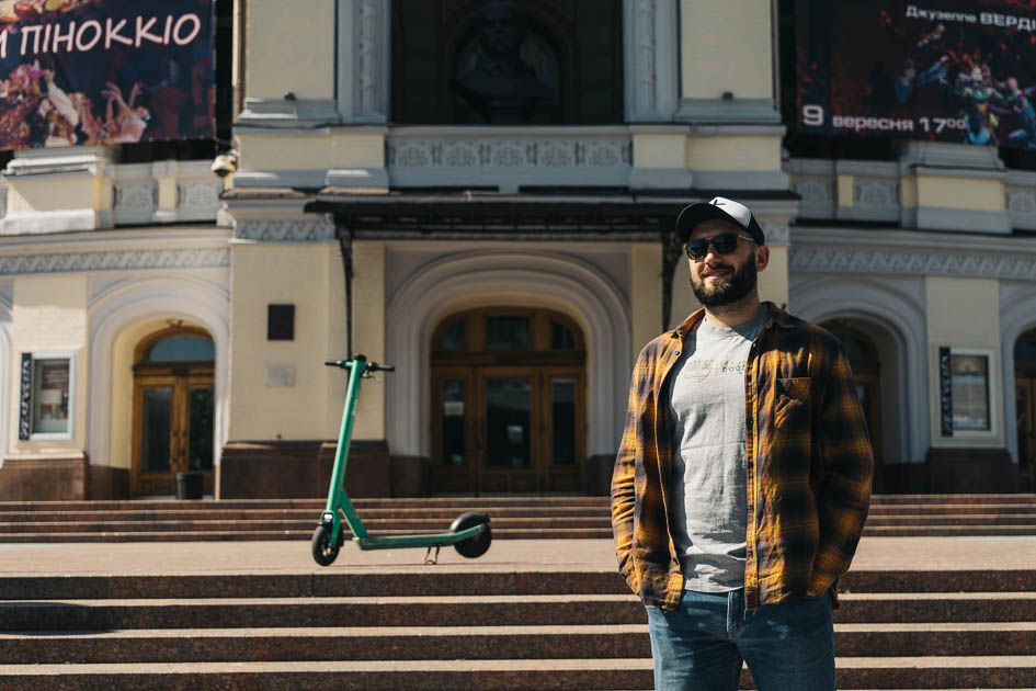 Нещодавно зі мною сталось відкриття. Я стояв на Володимирський, побачив самокат і подумав: «А не поїхати б мені на Труханів?!». Десь пів години просто кружляв центром, так не доїхав до Труханова, але класно відпочив. Я відчув прилив адреналіну та в мене прям покращився стан. Раніше ідея з самокатами не цікавила мене, але зараз я прям змінив своє ставлення та зрозумів, як це круто. Це таке відчуття легкості, польоту та можливість відчути контакт з містом. Ти відчуваєш свободу і ніби трішки стаєш дитиною. А діти – вони вільні!