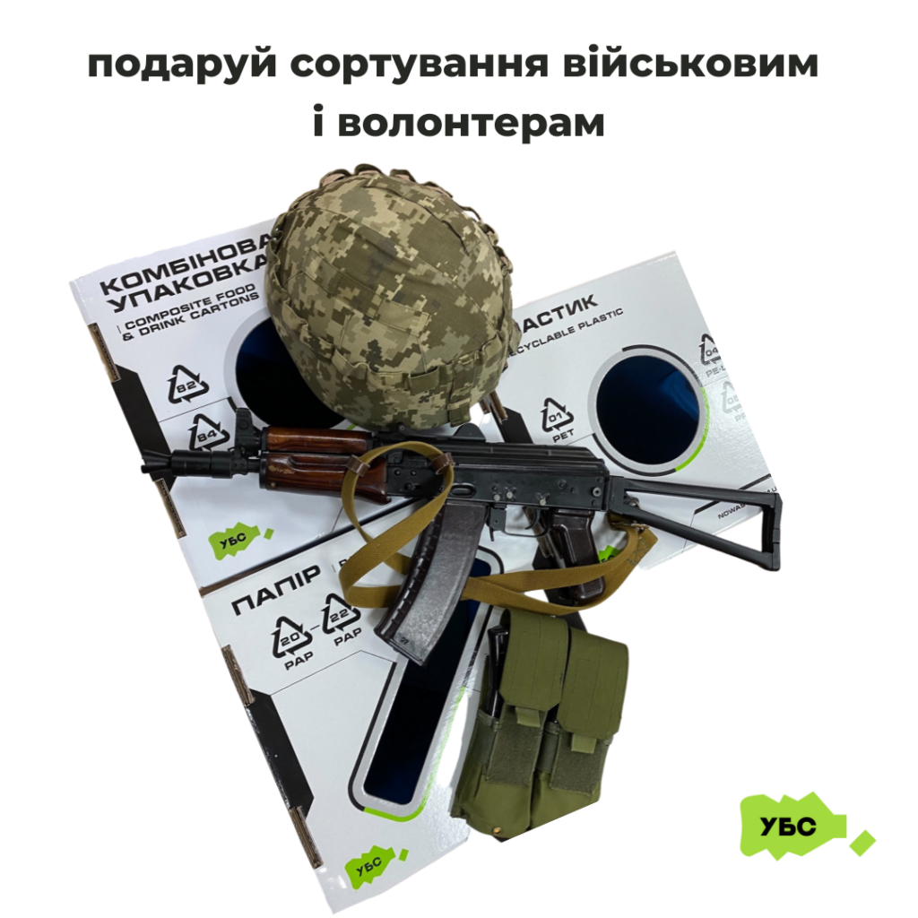 «Україна без сміття» запускає ініціативу «Підвісь пакет!», щоб військові частини Києва та волонтерські штаби могли отримати сортувальний full-сервіс (послуга УБС Кур’єр) від УБС безоплатно.