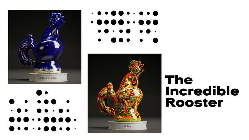 Таке поєднання символізує взаємне збагачення і звʼязок культур різних націй. Разом з тим, керамічний півник говорить світу про нездоланність української нації. А формат подарунка вказує на можливість підтримки України через покупку мистецтва.