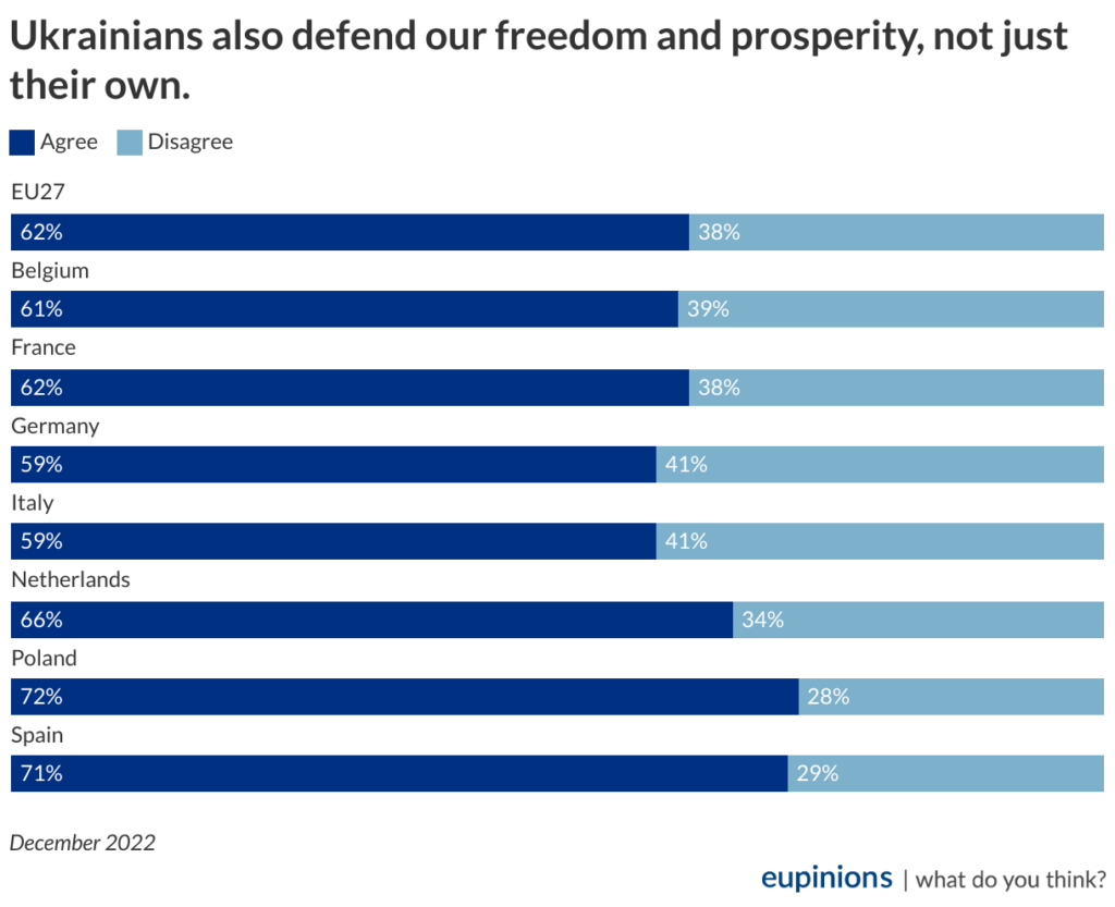 В опитуванні, проведеному в грудні 2022 року, взяли участь майже 13 300 громадян ЄС у Бельгії, Франції, Німеччині, Італії, Нідерландах, Польщі та Іспанії.