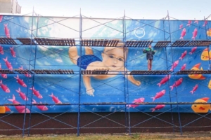 Пано на проспекті Тичини датується 1960-ми роками. Його виконали у техніці глазурованої плитки. Згодом панно закрили утепленням, а через деякий час намалювали мурал.