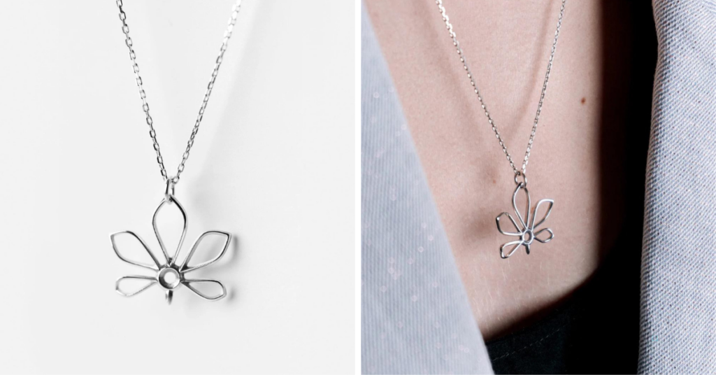 Срібна підвіска у вигляді листочку каштана – дерева, яке неодмінно асоціюється з українською столицею.