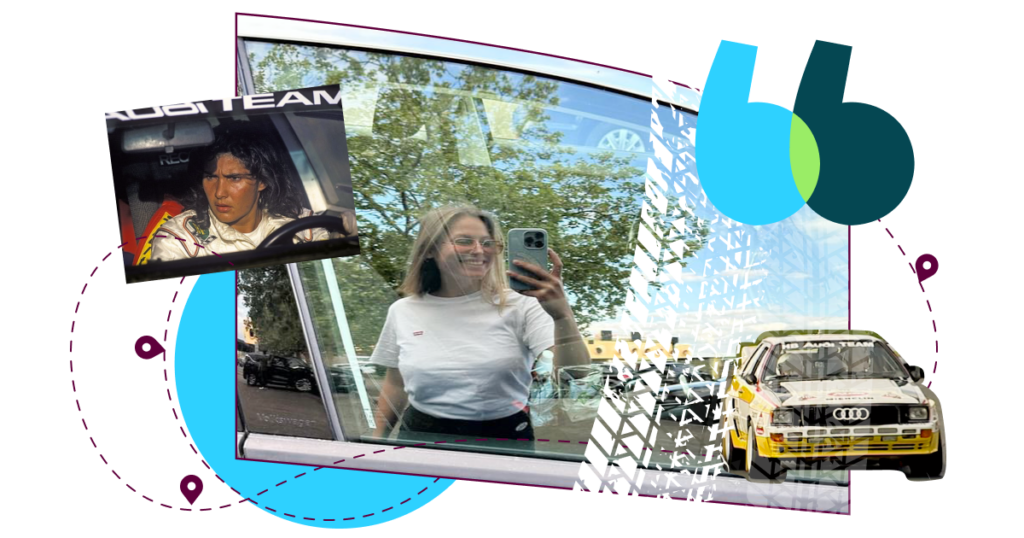 Дитиною я обожнювала дивитися ралі та фристайл-водіння. Поміж усіх цих чемпіонів та змагань була лише одна жінка у 80-х, і вона мала автівку, яку спеціально для неї розробив концерн Audi. Ця водійка ставала чемпіонкою три роки поспіль, хоча її спочатку навіть не хотіли допускати до змагань, і для мене це було таке захоплення… Можливо, трохи дивно — ідеалізувати людину, яку ніколи не зустрічала, — але мені так хотілося бути такою ж крутою, як вона, і водити машину.