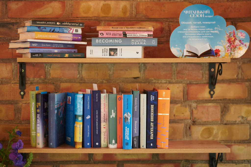 До читацького сезону тут зібрали різну літературу: «Смак життя» Ірини Скрипак і Оксани Штоляр, «Good Vibes, Good Life» Векса Кінґа, «Творчий акт» Ріка Рубіна, «Триста поезій» Ліни Костенко, «Книга Love 2.0. Любов і війна», «Шалені авторки», «Маленький принц» Антуана де Сент-Екзюпері, «Квіти для Елджернона» Деніела Кіза та інші.