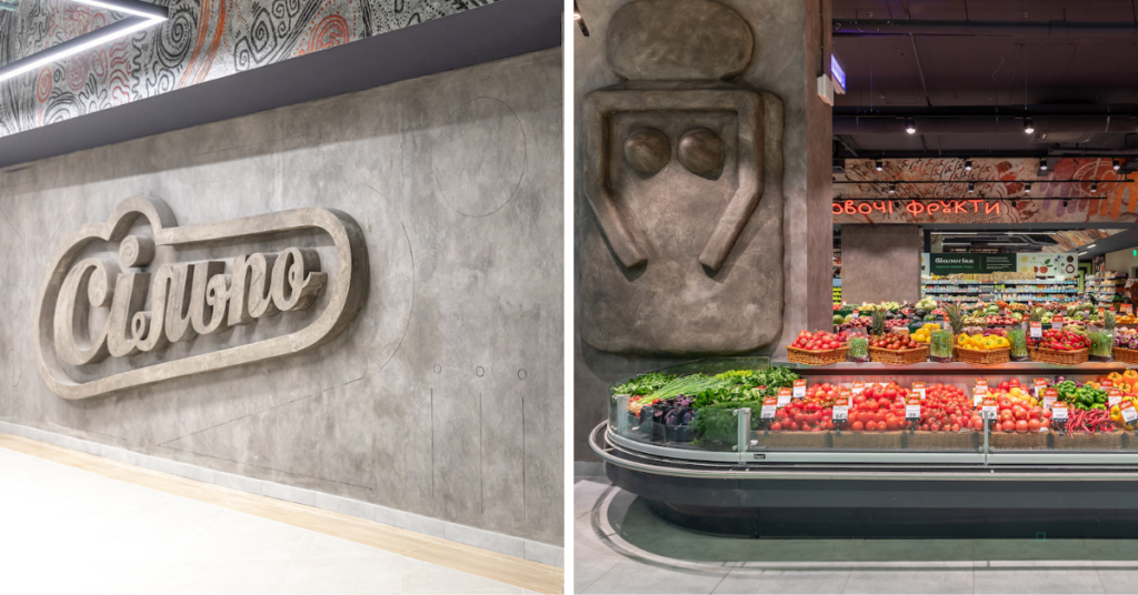 «Натхненні первісним мистецтвом — петрогліфами, команда “Сільпо” вирішила прикрасити ними стіни нового супермаркету, – розповідають представники компанії. – На вході магазину площею 1452 кв. м Гостей зустріне камʼяний логотип «Сільпо», де зашифровано таємне послання, а камʼяні ідоли та баба з приазовських степів супроводять у полюванні на найсмачніше».