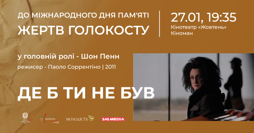 До Дня пам’яті жертв Голокосту 27 січня о 19:35 у столичному кінотеатрі «Жовтень» відбудеться спеціальний показ фільму «Де б ти не був» з Шоном Пенном у головній ролі.