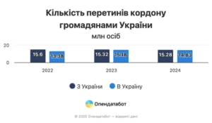 За інформацією Держприкордонної служби, у 2024 році українці перетинали кордон 30,11 млн разів. З них близько 2% не повернулися до країни, що становить приблизно 500 тисяч осіб. Це утричі більше, ніж у 2023 році.