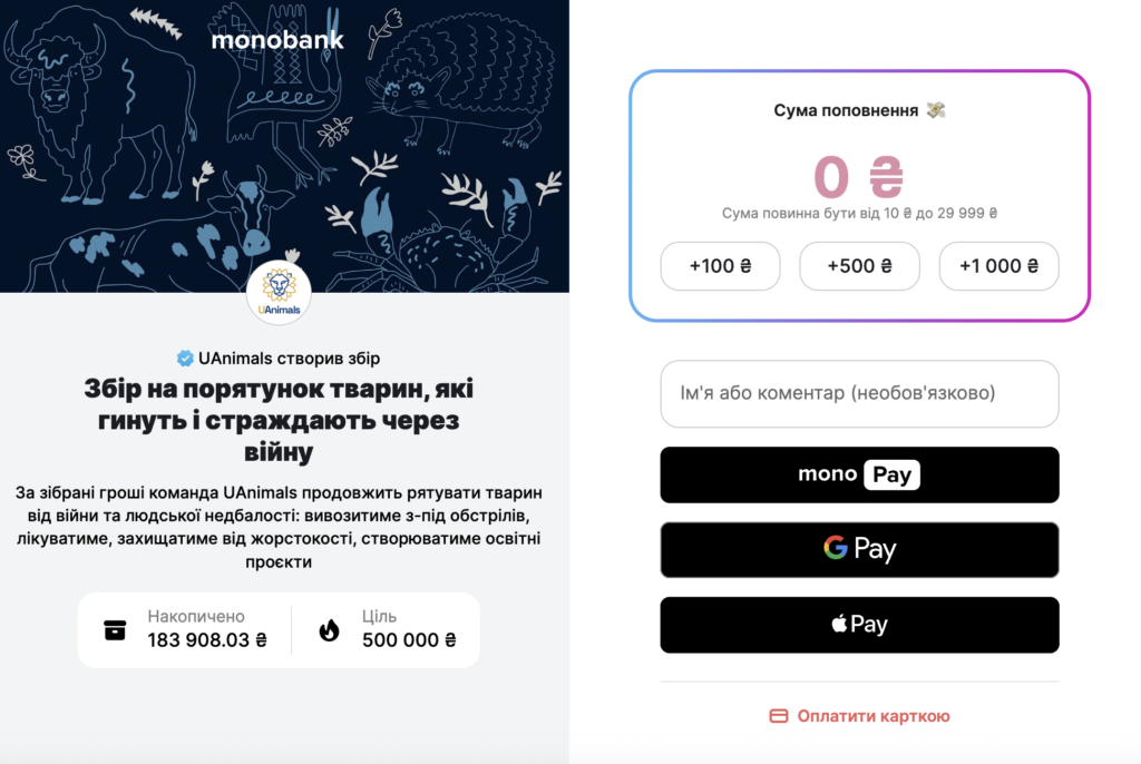 Команда UAnimals запустила збір на порятунок тварин, які гинуть і страждають через війну. За донат від 100 гривень на монобанку можна буде отримати винятковий скін.