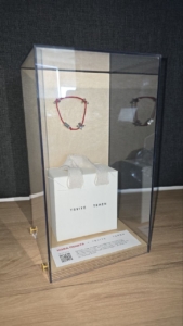 У скляних боксах можна побачити браслет із срібною пташкою-символом та гравіюванням «Завтра буде», доповнений фірмовим пакованням.