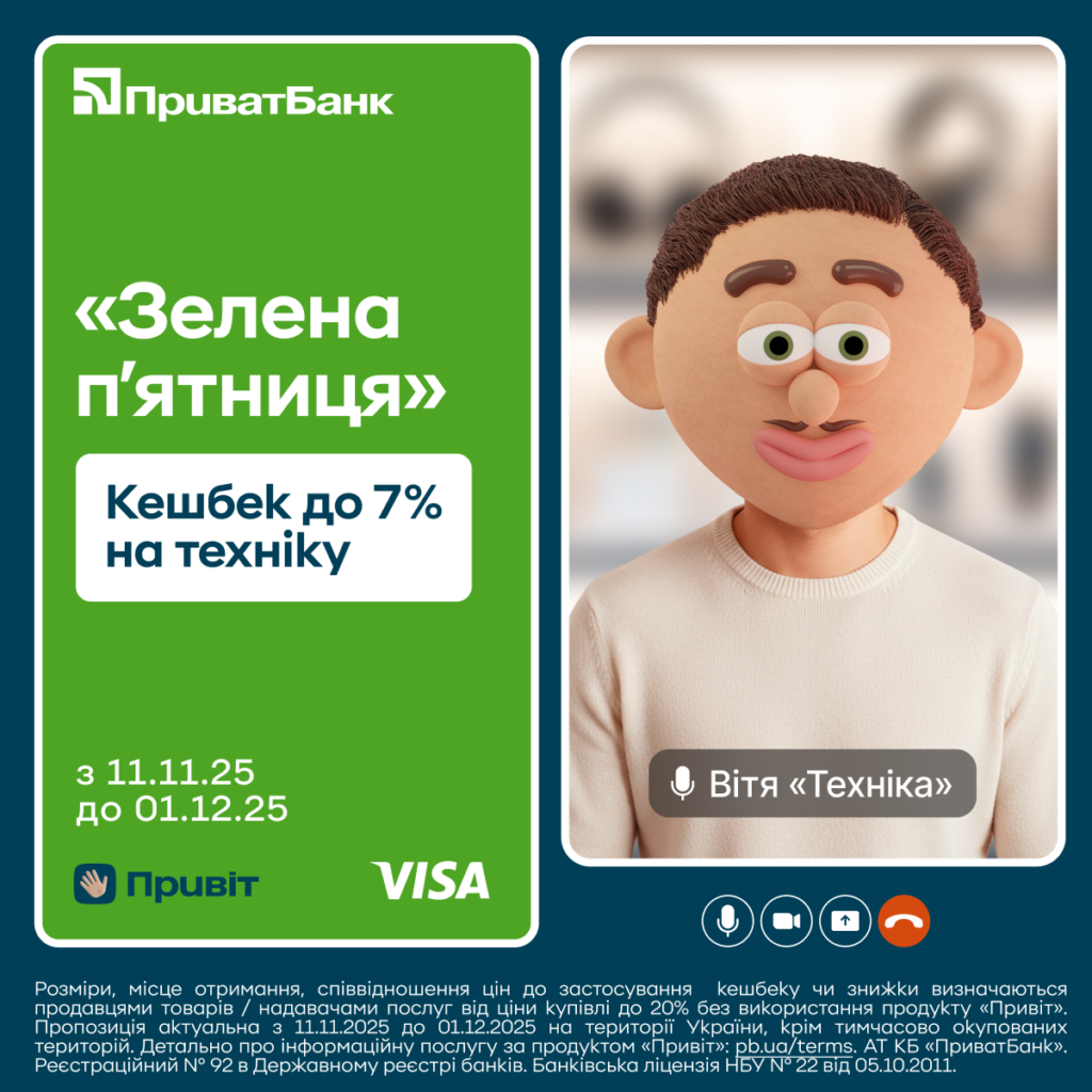 ПриватБанк та Visa розпочинають сезон вигідних пропозицій для клієнтів в сезон розпродажів. «Зелена п’ятниця», яка діє з 11 листопада до 1 грудня 2025 року дає можливість купувати з картками ПриватБанку & Visa в Україні й за кордоном за найбільшими за рік знижками та кешбеками від програми лояльності «Привіт» в Приват24.