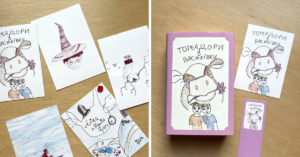 Частину малюнків також видали у форматі листівок і закладок. Від кожного такого придбаного сувеніра 10 гривень передають на проєкти «Клубу Добродіїв», що підтримує дітей у складних життєвих обставинах.