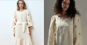 Для святкового образу ми обрали сукню «Ясмин» від Etnodim — лляну, позачасову й дуже відчутну. Вона про спокійну урочистість і той настрій, коли не хочеться нічого зайвого.